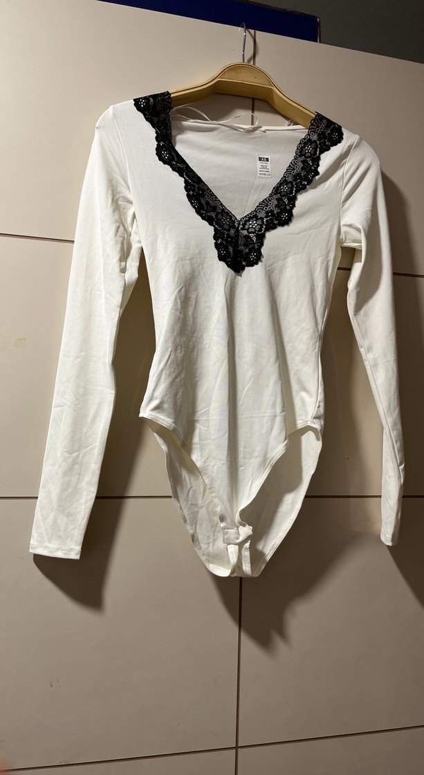 Dantel detaylı V yaka, uzun kollu beyaz bluz. Sentetik kumaştan, normal boyda ve vücuda oturan kesimde, günlük kullanıma uygun.