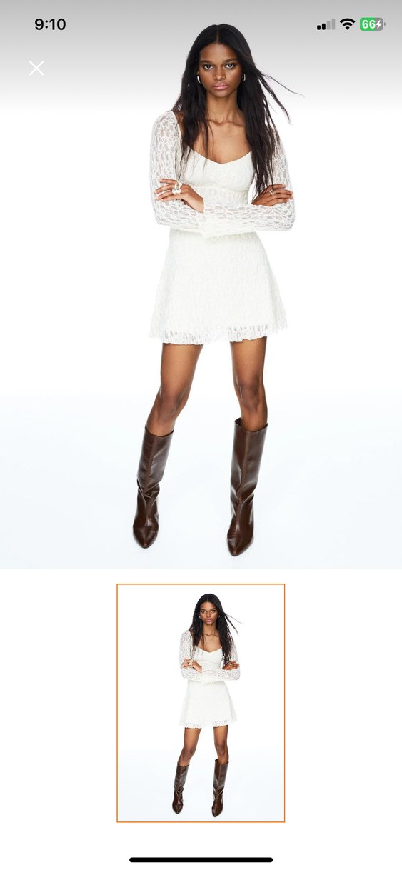 Dantel detaylı, V yakalı ve bej tonunda mini elbise. Bohem tarzıyla romantik akşamlar için uygun, şık ve rahat bir seçim.