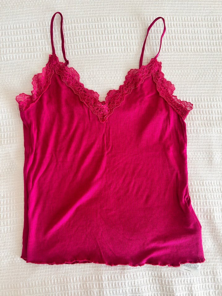 İnce askılı, dantel detaylı ve V yaka pembe kadın atlet. İpek gibi dokusu ve bohem tarzıyla romantik anlar için ideal.