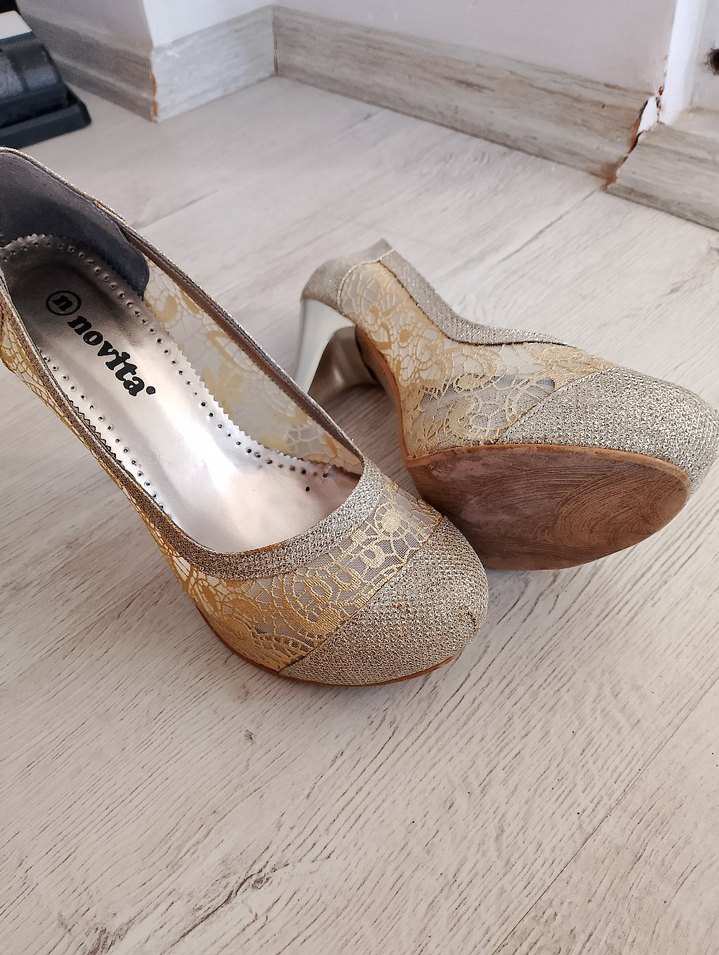 Dantel Detaylı Vintage Altın Dolgu Topuklu Kadın Ayakkabı