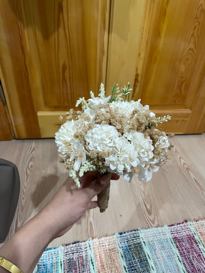 Dantel Detaylı Vintage Beyaz Gelin Buketi