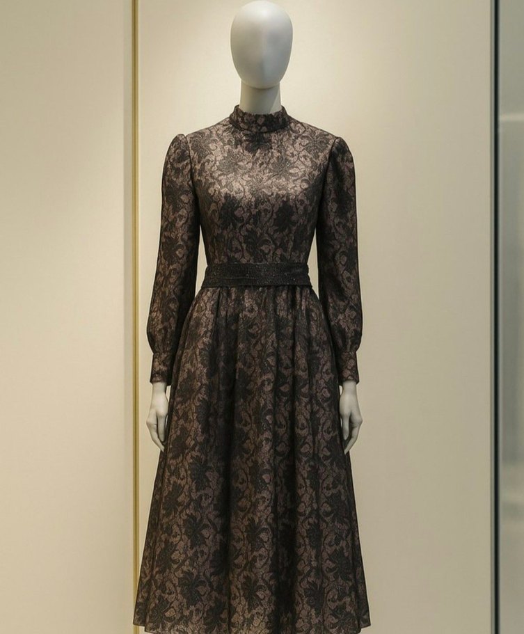 Dantel Detaylı Vintage Uzun Kollu abiye