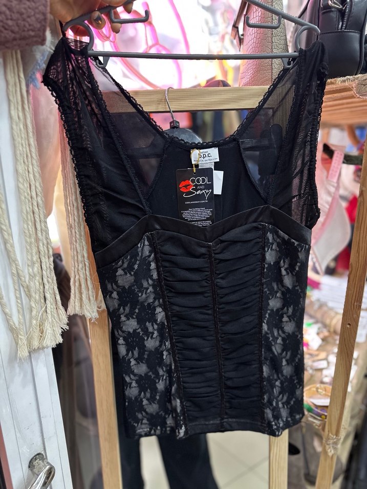 Dantel detaylı, V yakalı ve askılı kollu siyah gotik tarzda, sentetik kumaştan yapılmış, normal boy ve vücuda oturan büstiyer. Vintage 2yk iki kol arası 45 boyu ise 69 cm’dir lütfen ölçülere bakarak alım yapınız iade kabul edilmemektedir anlayışınız için şimdiden teşekkürler.