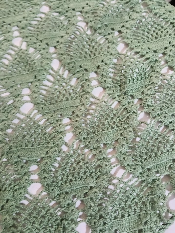 Dantel detaylı, yeşil renkli, örme kadın şalı. Rahat bohem ve retro tarzda.