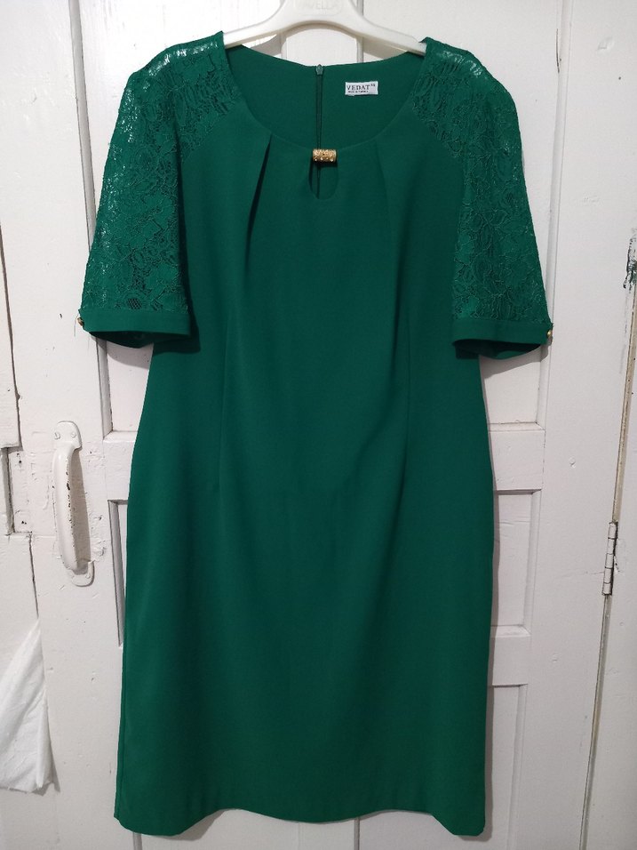 Dantel Detaylı Yeşil Midi Abiye Elbise