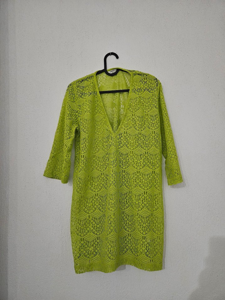 Dantel Detaylı Yeşil Pareo Plaj Elbisesi Papaya Small