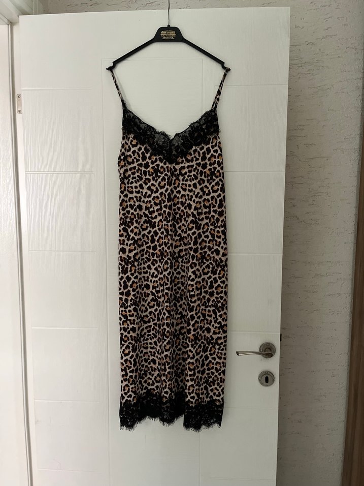 Dantel Detaylı Yılan Desenli Uzun Askılı Elbise