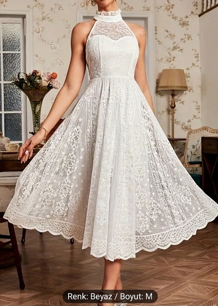 Beyaz renk M beden yanında inci kemer ve inci takı seti hediye