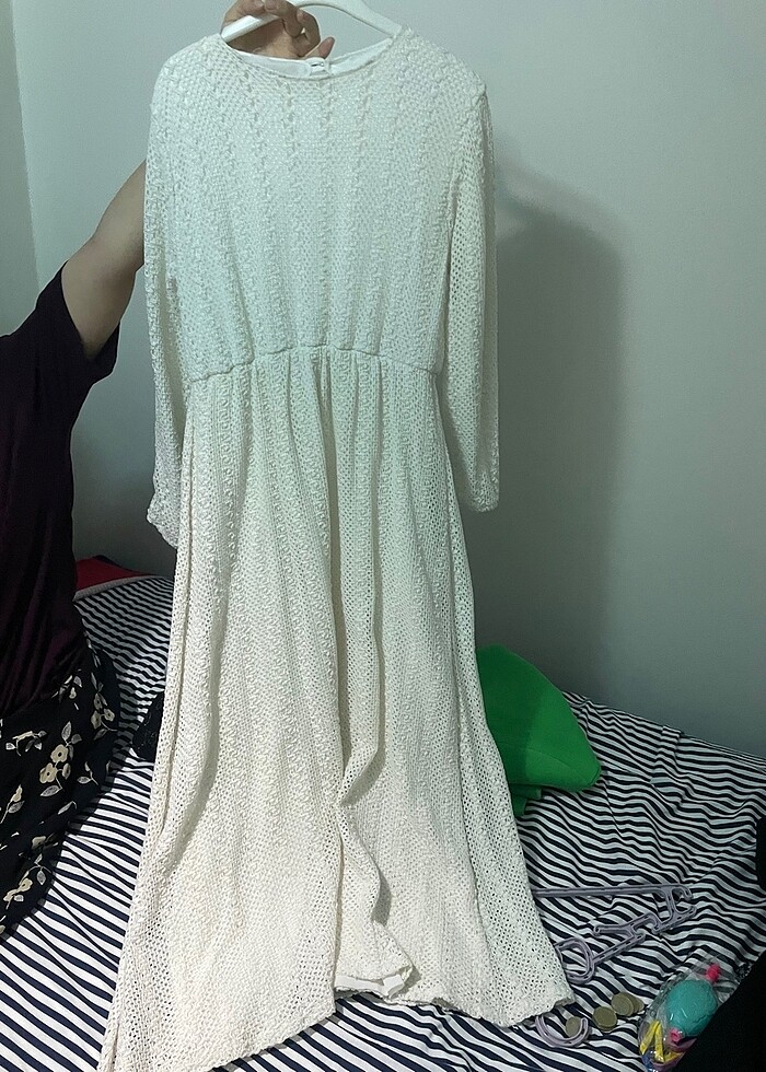 Kendinden astarlı Beli ve kolları lastikli #tesetturelbise #dantelelbise