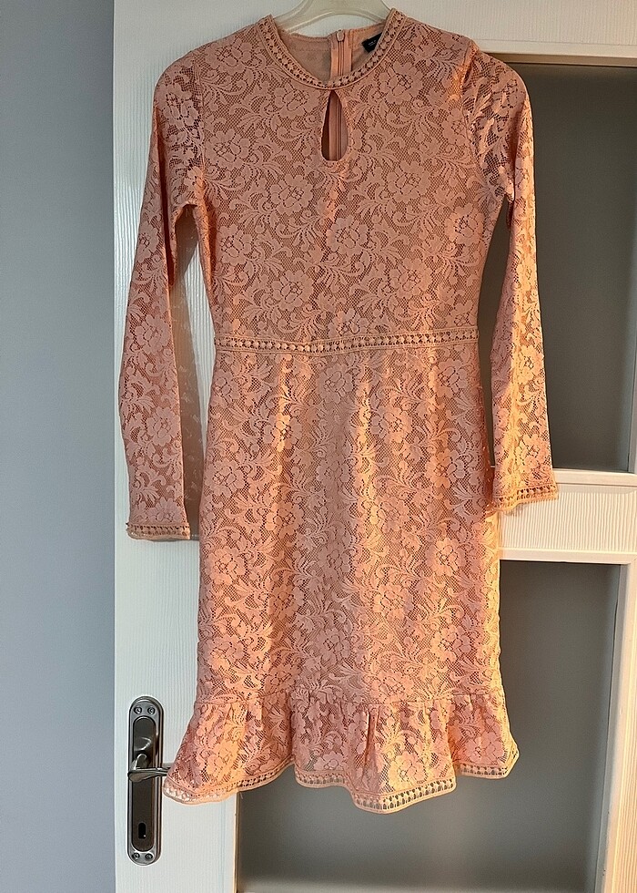 Sıkıntısı yoktur. Dantel kumaştır. Esnek değil dar kalıptır. Astarlıdır