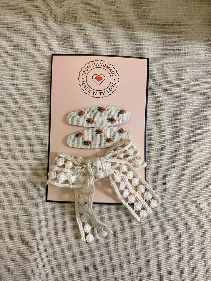 Dantel Fiyonk ve Nakışlı Bebek Toka Seti