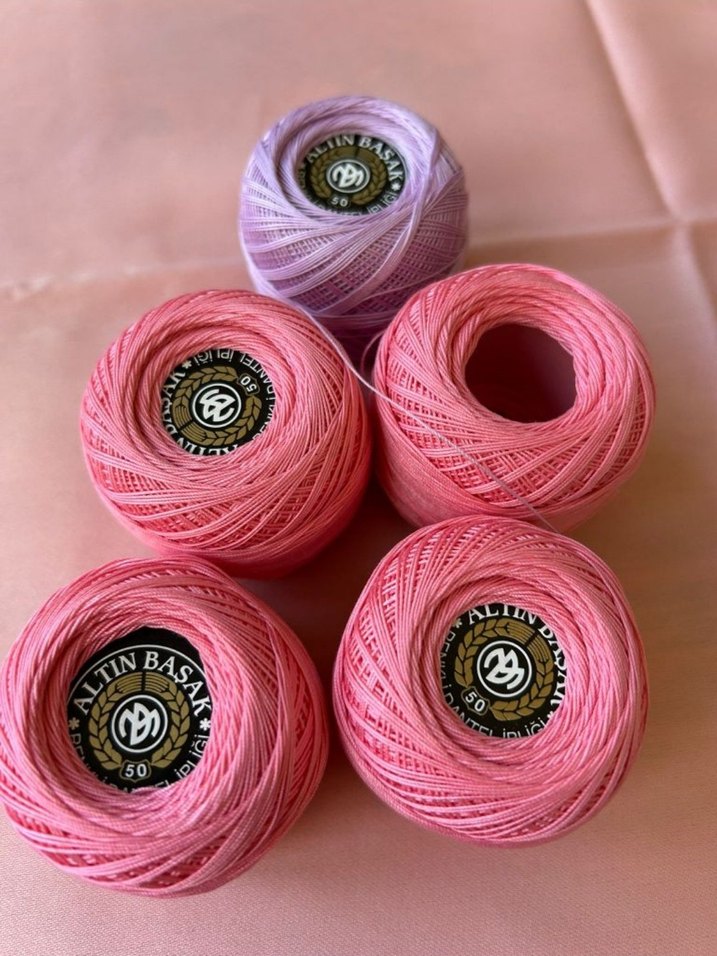 Yumuşak pembe ve lavanta tonlarında, 50 numara dantel ipleri. markası altınbaşak
