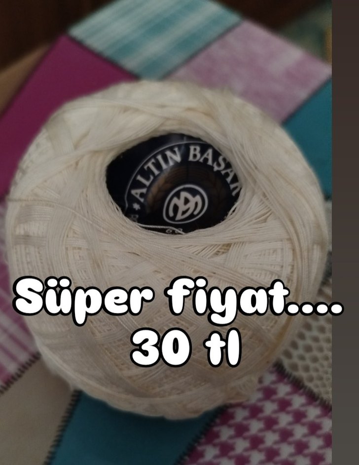 Bohem tarzı el işi için doğal li iplik. Üzerinde "Altın Başak" markası bulunur.