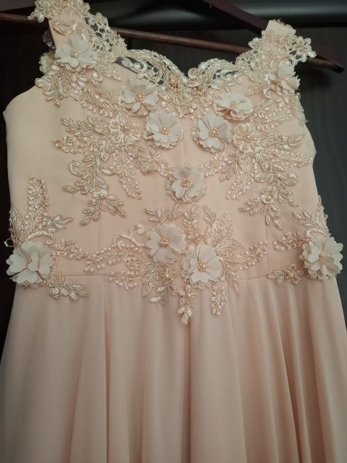 Dantel İşlemeli Bej Uzun Abiye Elbise 13-14 yas