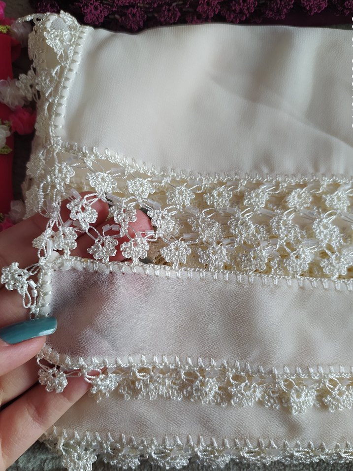 Dantel İşlemeli beyaz Kadın mevlüt şalı