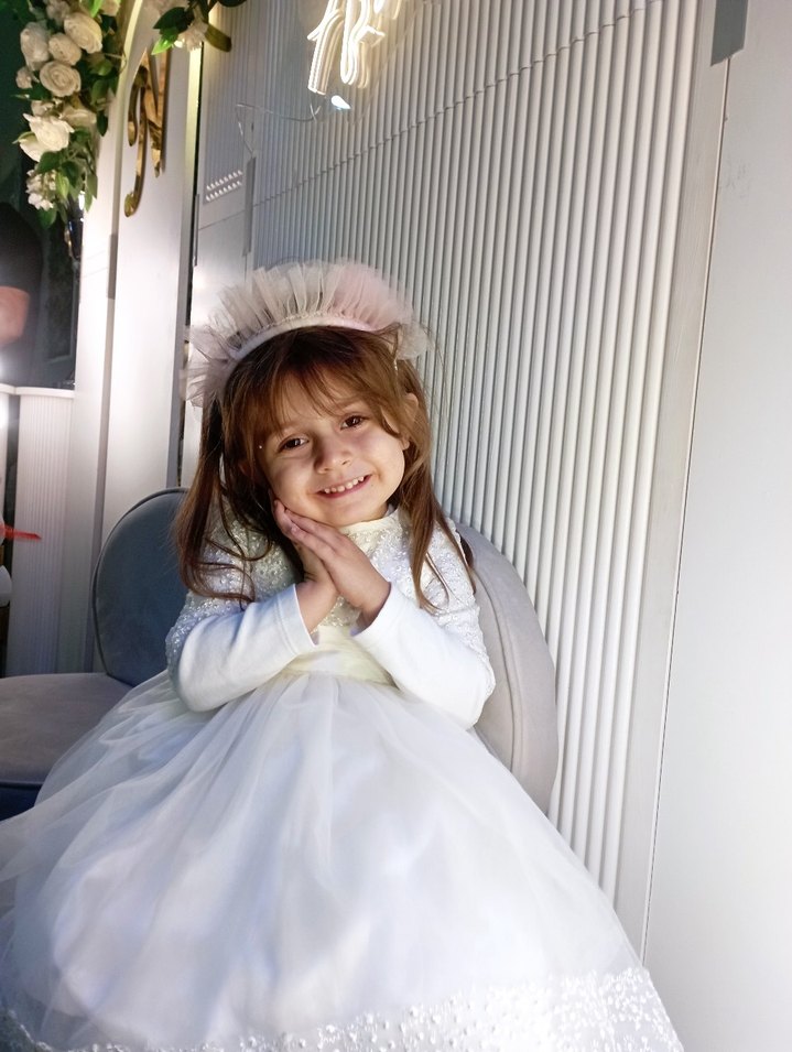 Dantel İşlemeli Beyaz Kız Çocuk Elbisesi