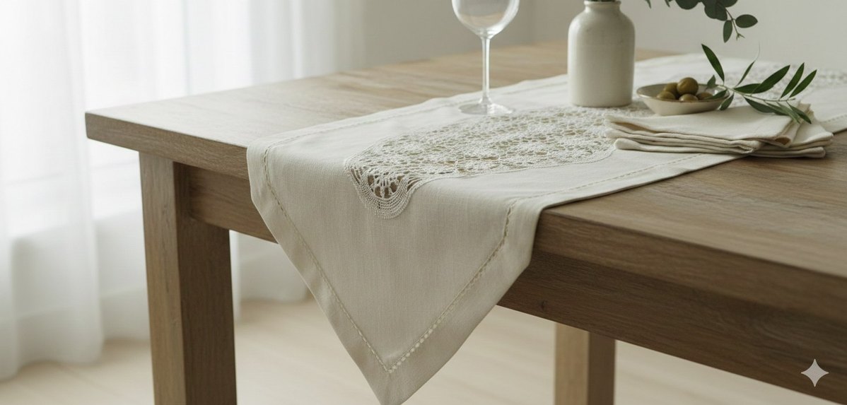 Dantel İşlemeli Beyaz Masa Örtüsü