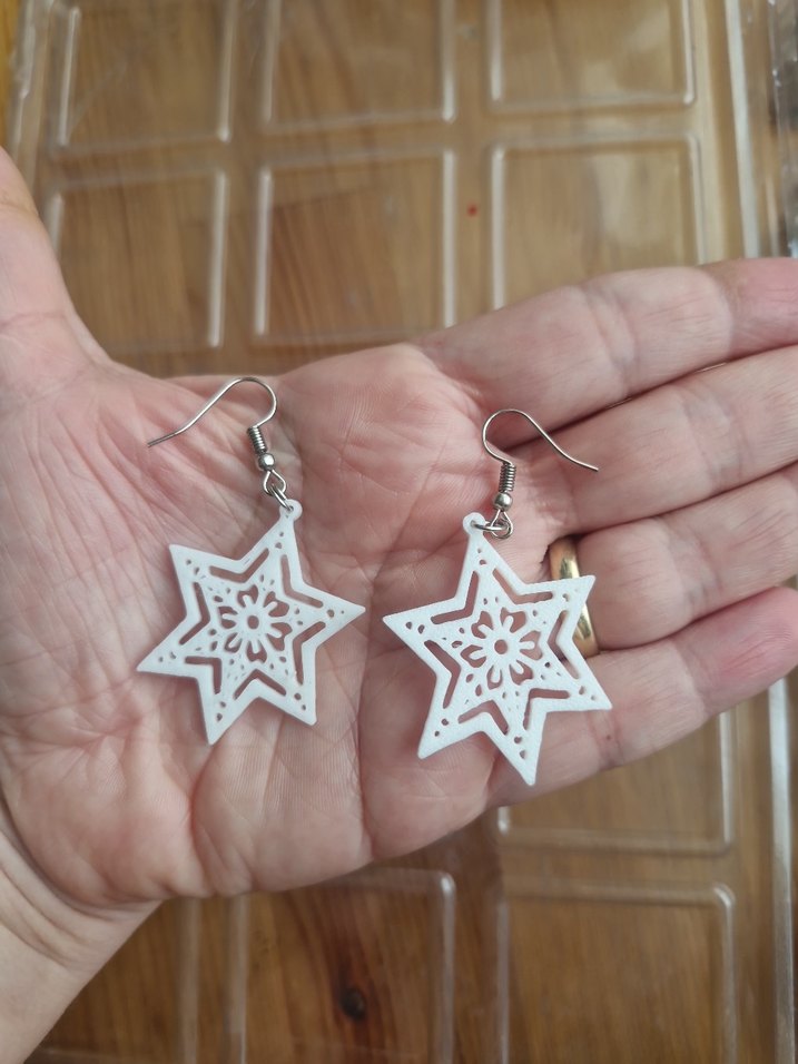 Dantel işlemeli beyaz yıldız şeklinde küpeler,3d pla plastiktir.