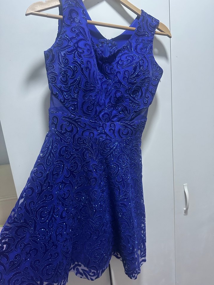 Dantel İşlemeli Kısa Mavi Abiye Elbise
