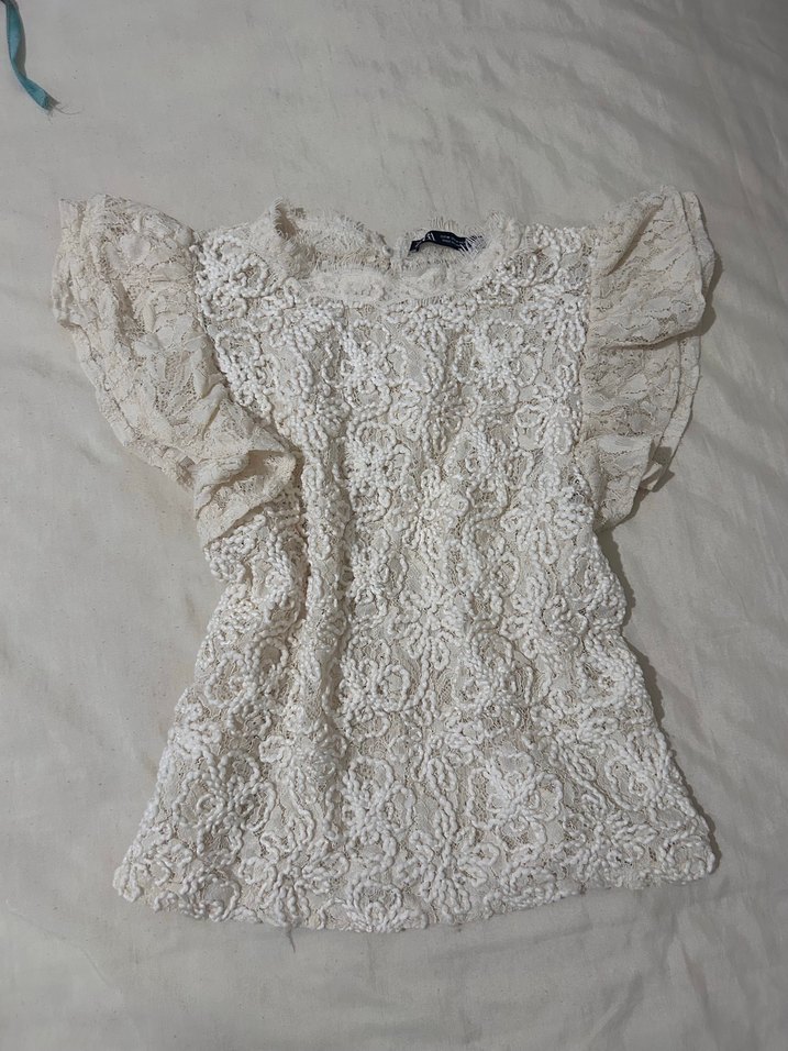 Dantel İşlemeli Krem Kısa Kol Bluz Orijinal