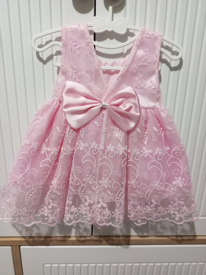 Dantel İşlemeli Pembe Kız Çocuk Elbise