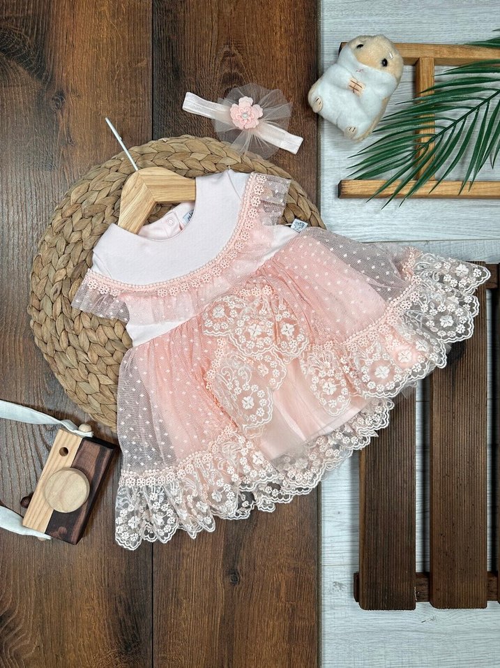 Dantel İşlemeli Pembe Kız Çocuk Elbisesi