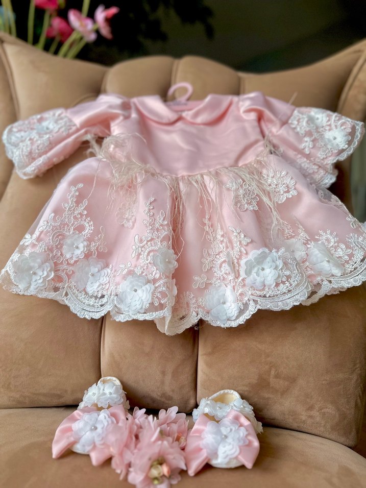 Dantel İşlemeli Pembe Kız Elbisesi Mevlüd ve davet için