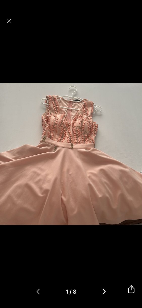 Dantel İşlemeli Pembe Mini Abiye Elbise s/m uygundur