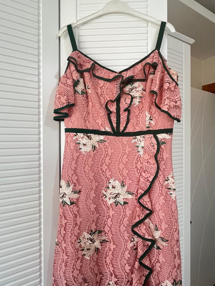 Dantel İşlemeli Pembe Uzun Askılı Elbise