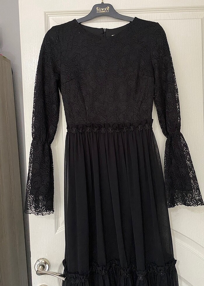 Dantel işlemeli siyah abiye