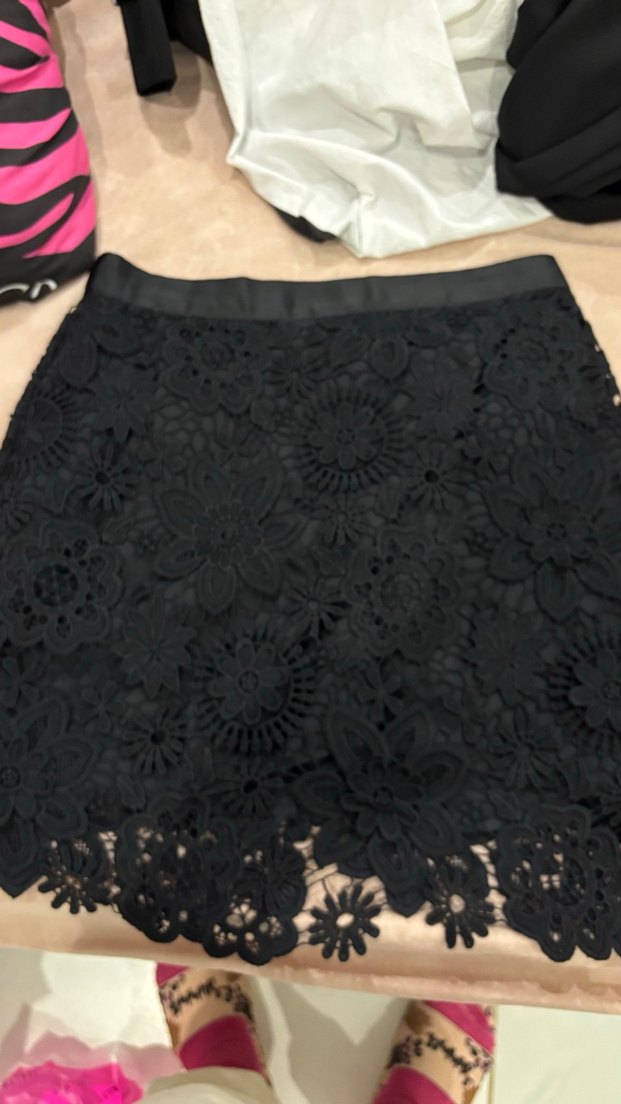 Dantel işlemeli, siyah ve vücuda oturan bu midi mini etek, cesur romantik akşamlar için uygundur. ✨