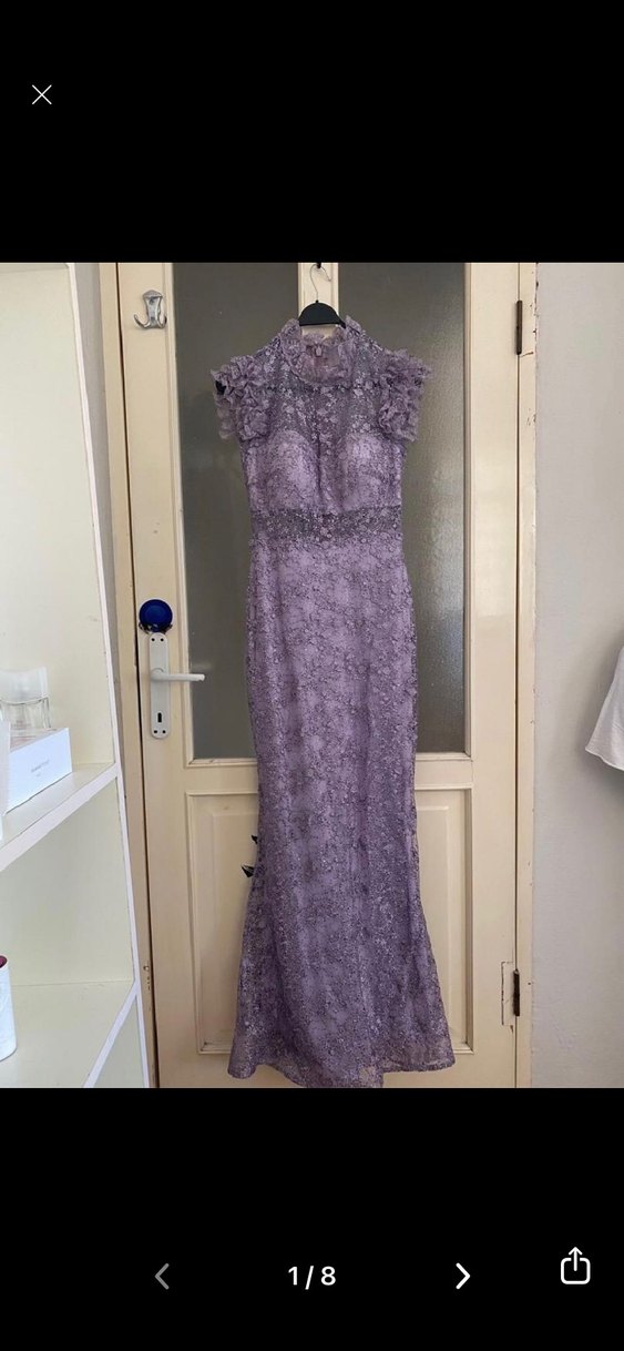 Dantel işlemeli, straplez yaka ve sımsıkı kesime sahip uzun mor abiye elbise. Modern klasik tarzda, düğünler için uygun, kolsuz ve şık bir tasarım. -Ürünün etiketinde 42 Beden yazmaktadır ancak aldığım yerde üzerime uygun olarak yapıldı 36 Beden oldu -Sadece 1 Kere kullanıldı Boyum : 1.64 7 cm Topuklu ile giydim.