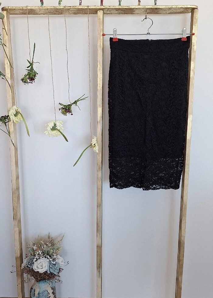 Dantel kumaş, midi boy, kalem etek. Temiz kullanıldı, hiçbir kusuru yoktur.