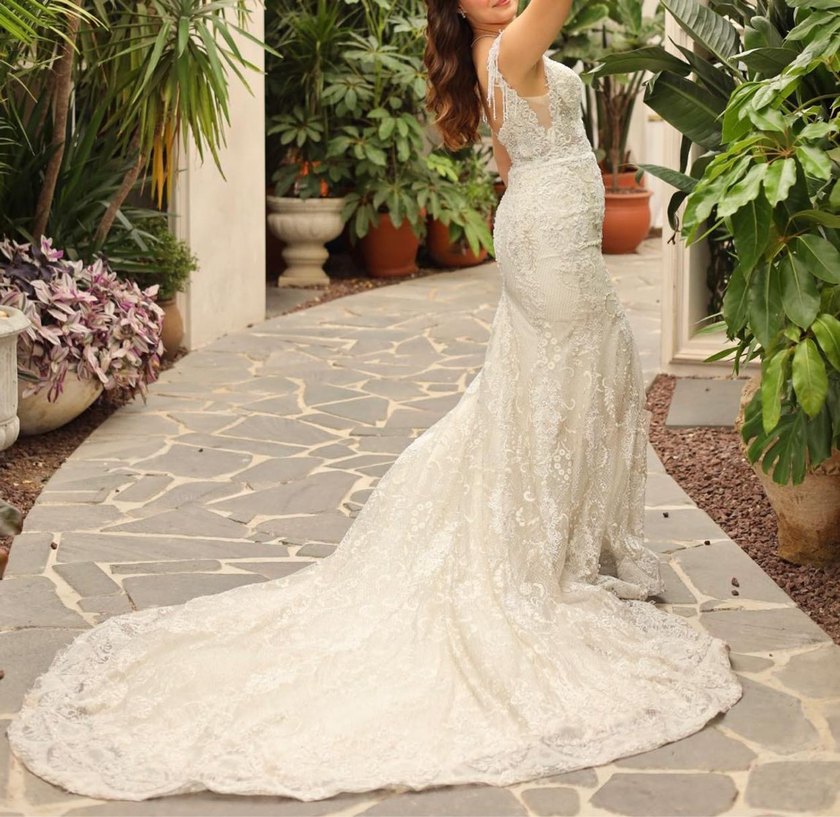 Dantel Kasnak İşlemeli Taşlı Balık Model Gelinlik