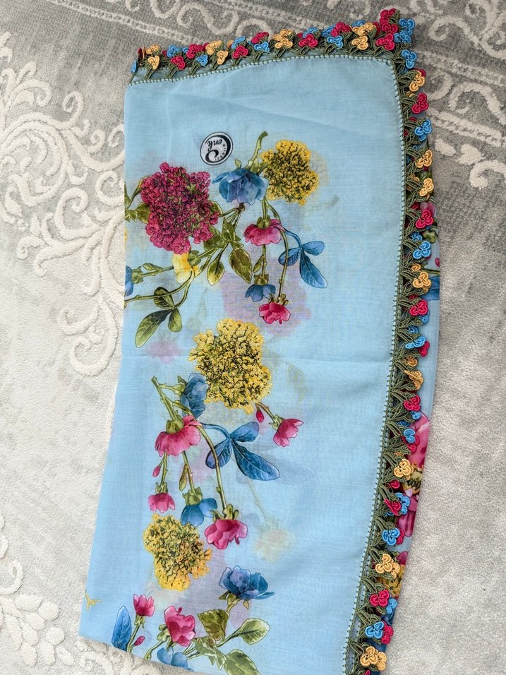 Dantel Kenarlı Bohem Çiçek Desenli Kadın tülbent