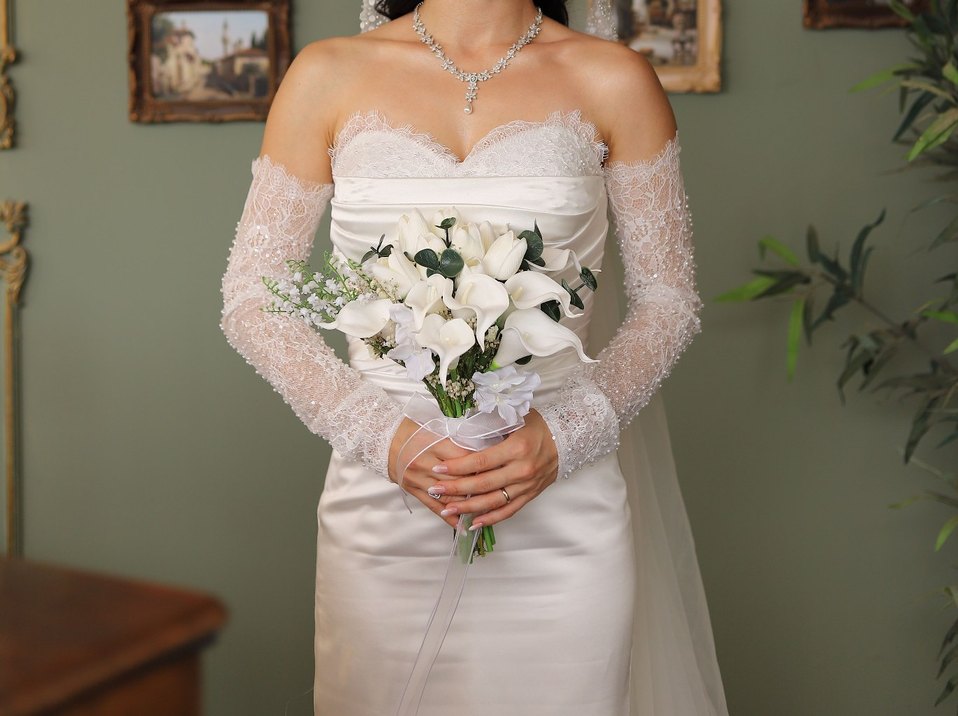 Beyaz straplez gelinlik, dantel kollu ve vücuda oturan kesimiyle modern klasik ve göz alıcı bir şıklık sunar. Balık model ve zarif dantel detaylar sofistike bir görünüm sağlar. *Duvak hediye olarak gönderilecektir. Kuru temizlemesi yapıldı. Gelinlik 34 beden arkası ayarlanabilir. Ciddi alıcılar detaylı bilgi için yazabilir.