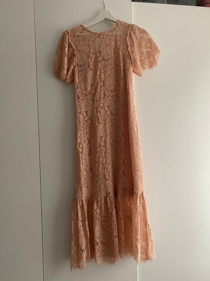 Dantel kumaştan, kısa kollu . Rengi fotoğraflarda tam yakalayamadım. Elbise 3 veya 4 kere giydim . Ayakkabıya göre kemerle de kombinlenebilir. İçi kendindem astarlıdır yırtmaç vs yok m beden ama s beden iken de giyebildim Boyum 170 dir son görselde boyunun nerede bittiğini görebilirsiniz Zara kendi mağazasından alındı