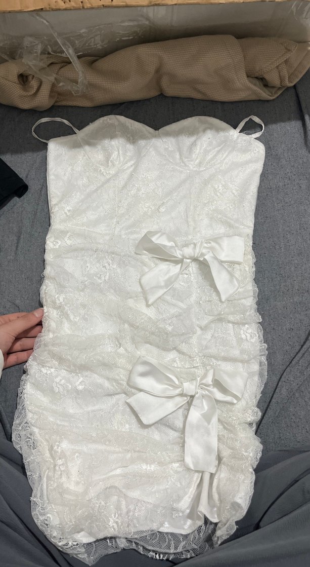Dantel Mini Beyaz Straplez Gelinlik