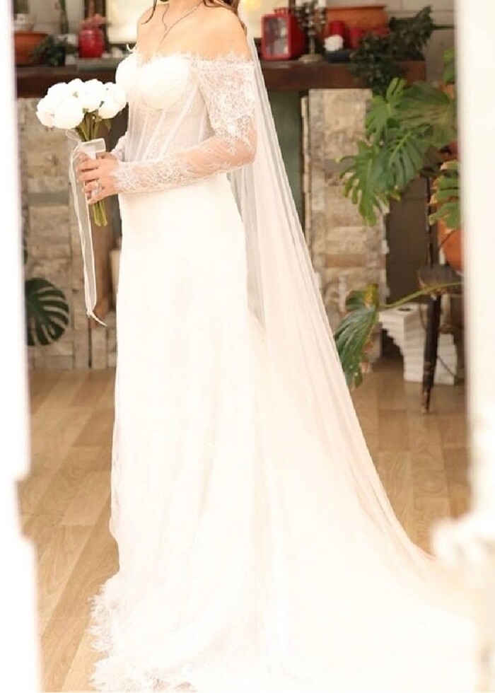 Full Fransız danteli özel dikim yapılmıştır. 36-38 Beden aralığın da arkasındaki ipiyle kolay geçirip giyilmesi kolaydır. Kilo 56 Boy 1.64 Gelinlikten ayrı olarak demonte 2 metre vardır. 17 Mayıs 2025 tarihinde kullanıldı. Bursa da ikamet ediyorum. Özel dikim yapılmış olup,58.000,00 ₺ alınmıştır. Pazarlık vardır.
