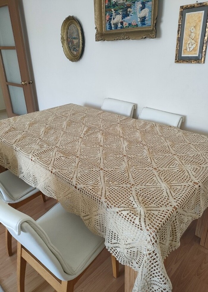 Masa örtüsü de olur.Yatak örtüsü de olabilir.Ölçüsü 210 a 160 cm.Kullanılmamış olduğu düşünüyorum.Yıkanmamışta.Örülüp kaldırılmış gibi.Genel olarak leke yok.Elde örülürken kirlenmiş gibi kırmızı leke gördüm sadece.Resimlerde gösterdim. #dantel #dantelmasaörtüsü #dantelyatakörtüsü #yatakörtüsü #masaörtüsü #çeyiz