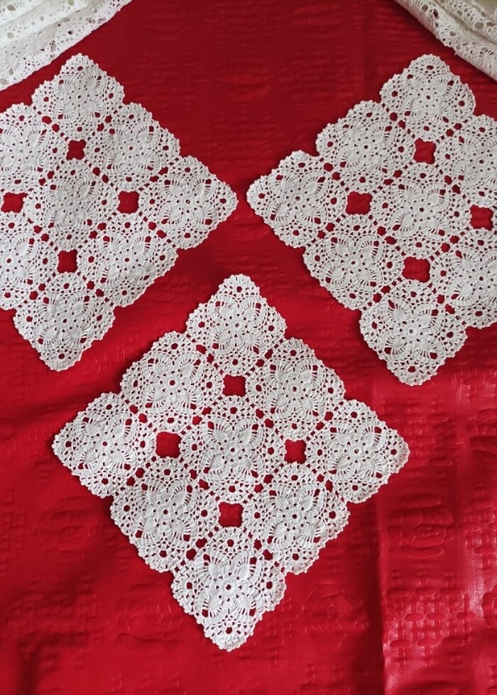 8 parça dantel örtüler Çapa marka 70 no iple örülmüştür az kullanılmış olup hiçbir sorunu yoktur ölçüleri 16&16 yıkanmış ve ütülenmiştir tertemiz
