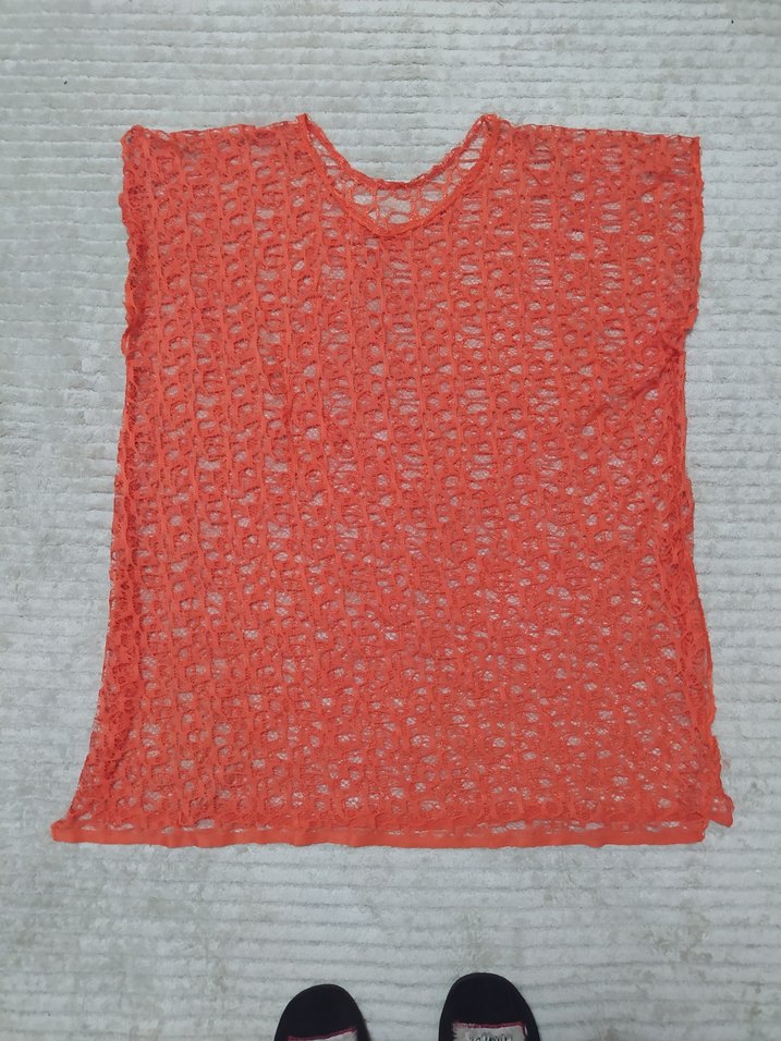 nar çiçeği rengi dantel pareo üst eni 60 cm boyu 74 cm uzunluğunda