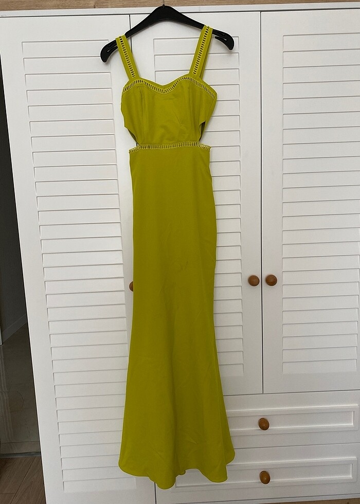 Yakası ve bel kısmı dantel şeritli ayrıca bel kısmı pencereli abiye elbise hiç kullanılmadı etiketi duruyor ön kısmında ufak bi lekesi var kargodan öyle gelmişti kullanmadığım için temizlemedim lekeli kısmın görseli de mevcut silinirse vs çıkabilir ama uğraşmadım açıkçası