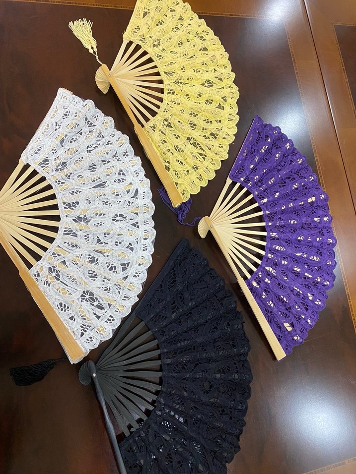 Beyaz, sarı, mor ve siyah renklerde dantel detaylı, ahşap saplı ve püsküllü yelpazeler. ️1 adet için fiyat geçerlidir