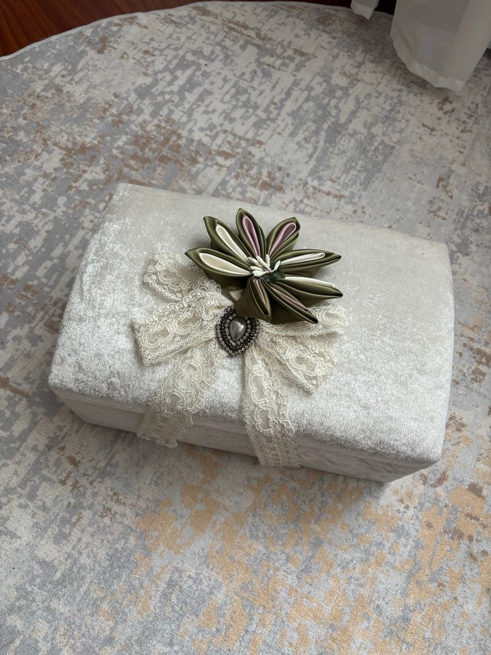 Dantel ve Nakış Detaylı Bohem Broşlu kadife sandık