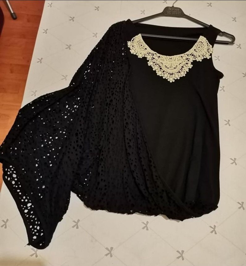 Dantel Yaka Siyah Geniş Kesim Bluz