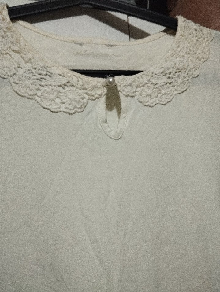Dantel Yakalı krem dökümlü Bluz