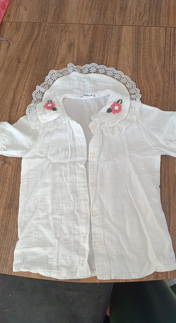 Dantel Yakalı Nakışlı Kız Keten Gömlek