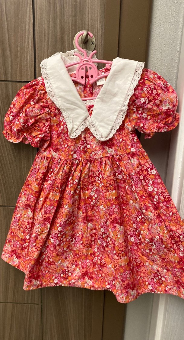 Renkli, pamuklu kumaştan yapılmış, dantelli yakalı, kısa balon kollu, bol kesim bohem tarzda kız elbisesi. Hic giyilmedi hediye geldi.