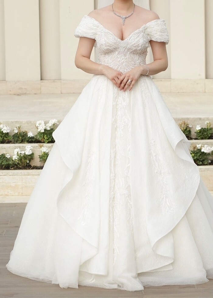 Caddebostan Weddiesten 90 bine aldım. İki farklı şehirdeki düğünümde kullandığım için fiyatını en dipte tutmaya çalıştım. 38-40-42 bedene çok rahat olur 1.70 boyla ilk 67 kg ile kullandım. Süreç içinde zayıflayıp 61 kg ile de giydim. Gerçekten kendini belli edip buradayım diyen zarif bir model. #oleg #olegcassino #gözdekaradana #daigelinlik #ivorygelinlil